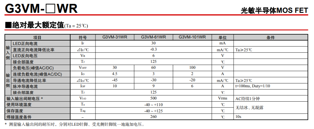 G3VM-31/61/101WR 光敏半導體MOS FET