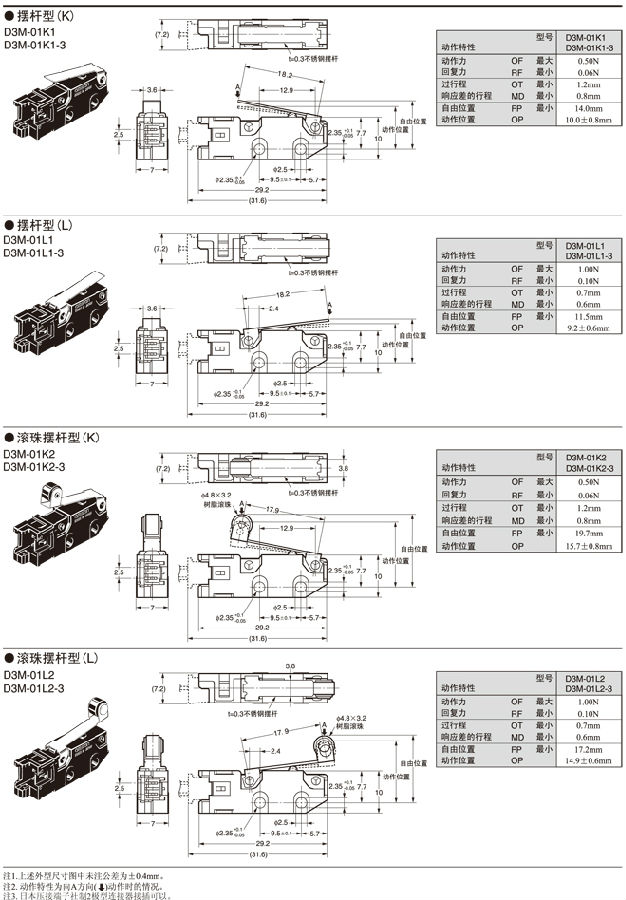 在針狀按鈕型中為了自由位置和總行程位置的數(shù)據(jù),在擺桿型中為總行程位置的數(shù)據(jù)。 接點(diǎn)的閉路或開(kāi)路在1ms以內(nèi)。 |