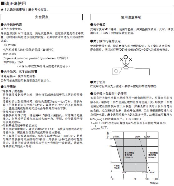 | 容許操作速度 | 1mm~1m/s(針狀按鈕擺桿型的場合) | |||||