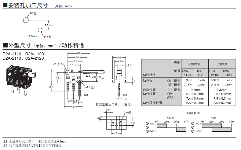 采用按鈕動作式的歐姆龍超小型開關 歐姆龍超小型(高6×寬8×深4.2mm)、輕量(約0.3g)、3mm的長行程。 由于是滑動方式,所以短路、非短路的切換時間可根據使用用途進行選擇。