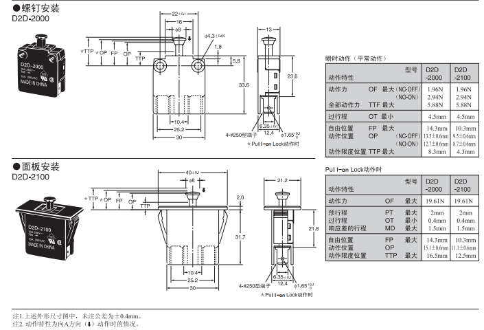 注. 1. 上述外形尺寸圖中,未注公差為±0.4mm。