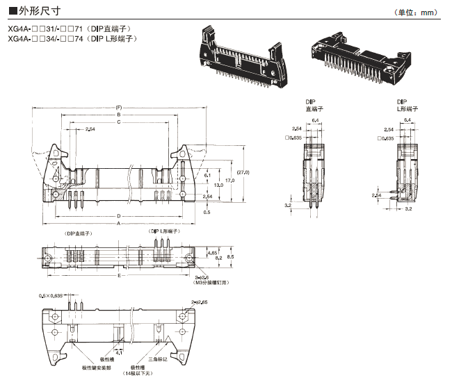 XG4A-□□32/-□□72 基板對電線連接